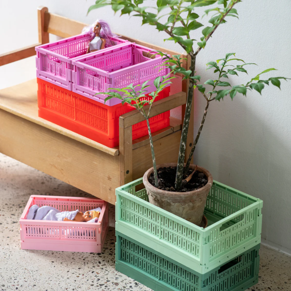 ארגז אחסון מתקפל בגודל מידי, עשוי מ-100% פלסטיק ממוחזר חזק וקשיח במיוחד. הארגזים אידיאלים לעיצוב וארגון החפצים והחדרים השונים בבית, מחדר הילדים, למטבח ולאמבטיה, וניתן לערום אותם זה על זה, ולקפל כשאין בהם צורך כך שלא יתפסו נפח. פלטת הצבעים היא אינסופית ואתן יכולות ליצור את היקום הצבעוני שלכן בכל דרך שרק תבחרו. מעוצב בדנמרק ומיוצר בפולין.