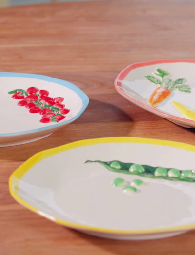 צלחות הגשה גדולות, עבות ואיכותיות, עשויות מקרמיקה. הצלחות משדרות קסם כפרי ואמנותי בזכות שילובי הצבעים הטבעיים ותבליטי הירקות המופיעים על הצלחות ונעשים בעבודת יד. יהיו מדהימות לשולחן אירוח, ואפילו כסנטר פיס לשולחן האוכל. מעוצב בהולנד.