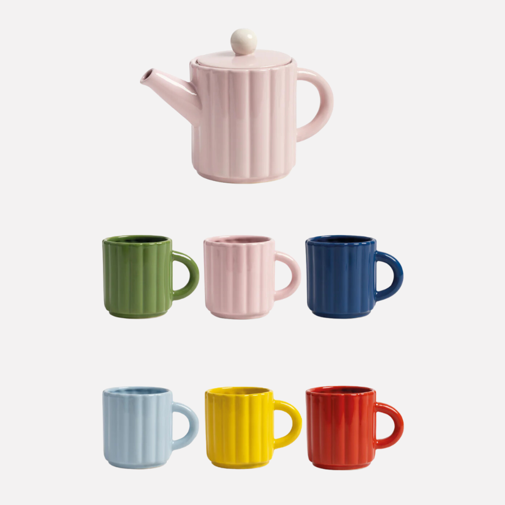 סדרת Tube היא הדרך הצבעונית והנכונה להנות מכוס קפה או תה. הכלים בסדרה עשויים קרמיקה ומתאפיינים בפלטת צבעים סתווית וצורניות עגלגלה שמשלימות אחת את השנייה. צרו לכן את סט ההגשה מהחלומות בשילוב הקומקום הורוד והכוסות מהסדרה.  מעוצב בהולנד.