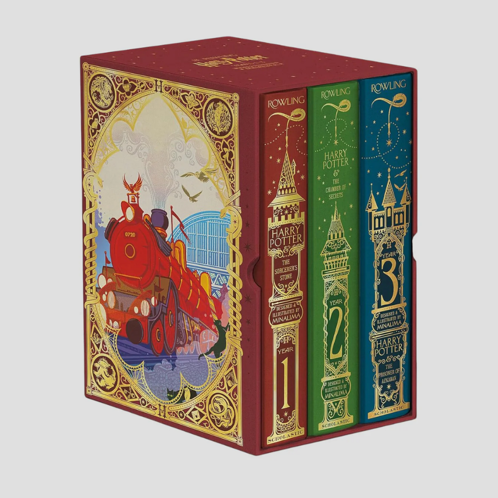 מארז תיק מאוייר ו-3 ספרי הארי פוטר: המהדורות האינטראקטיביות
