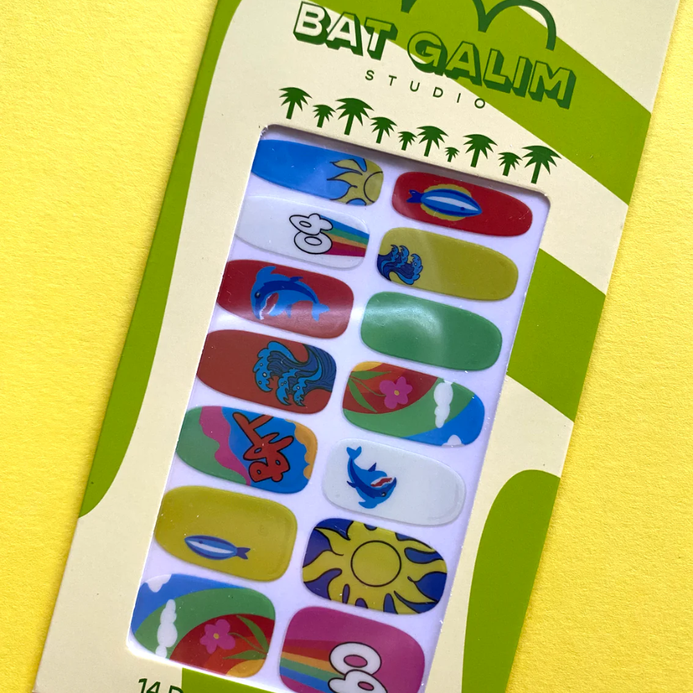 הסטודיו הישראלי "בת גלים" משיק קולקציית מדבקות לציפורניים, כך שנוכל לבחור בכל יום את הציפורניים לפי הלוק ומצב הרוח שלנו. הסט מכיל 14 מדבקות בגדלים שונים, שיש להתאימם לגודל הציפורן, ומשייף פצירה קטנטן שבעזרתו שמים את המדבקה על הציפורן באופן מדויק. בשונה מלק רגיל, המדבקות לא "נאכלות" בצדדים וניתנות להורדה נוחה על ידי טבילת הציפורן למספר שניות במים חמים, והמדבקה מתקלפת בשלמותה. להארכת חיי המדבקה בעוד מספר ימים - מומלץ למרוח שכבת לק שקוף מעל המדבקה.