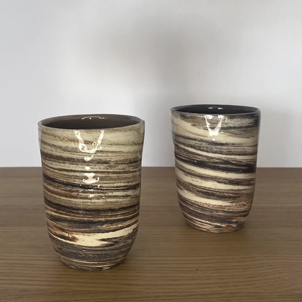 כוס קרמיקה LONG בעבודת יד של הסטודיו הישראלי לקרמיקה גלריה אבן, בעיצוב בצבעים טבעיים שיוצרים אפקט "מריחה" מסביב לכוס. הכוס מתאימה לשימוש במדיח הכלים ובמיקרוגל ומתאימה למשקאות קרים וחמים. מיוצר בתל אביב.