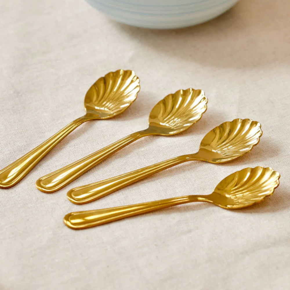 סט בעל 4 כפיות זהובות בעיצוב נוסטלגי ואלגנטי השואב השראה מהצורניות של הצדפים. הכפיות מושלמות לקינוח, שתיה חמה או כסט מתנה למישהי שהעיצוב הזה הוא בול בשבילה. הציפוי הזהוב על הכפיות עתיד לדהות עם הזמן - כדי להאריך את חייו אנחנו ממליצות לשטוף את הכפיות ביד ולא במדיח הכלים. מבית המותג הדני Rice DK.