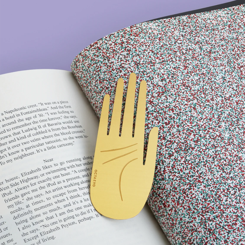 סימניית בראס גדולה ודקיקה בצורת החמסה הקלאסית. סימניית החמסה מיוצרת ממתכת בצבע בראס, אשר מחליקה על הדף כמו כפפת משי. החמסה מגיעה על גבי אריזת קרטון שהודפסה בדפוס משי.
