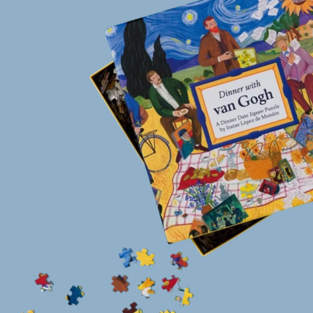 ארוחת ערב עם ואן גוך - פאזל 1000 חלקים עתיר פרטים שונים על האמן המפורסם, סביבתו ויצירותיו. הפאזל מציג "ארוחת ערב" בחברת וינסנט ואן גוך שמתקיימת עמוק בשדה חיטה, מתחת לשמיים זרועים כוכבים. הפאזל מאפשר לך להקים לתחייה את היקום הפוסט-אימפרסיוניסטי וגדוש הרגש של אחד האמנים האייקונים של המאה ה-20 וגם לגלות כ-21 עובדות חדשות ומפתיעות לגבי האמן, חייו ויצירותיו. מתנה כיפית ומשמחת לכל חובבת ואן גוך ובכלל - למי שאוהבת פאזלים מאתגרים בעלי עניין וסיפור רקע.