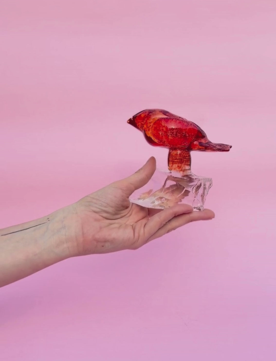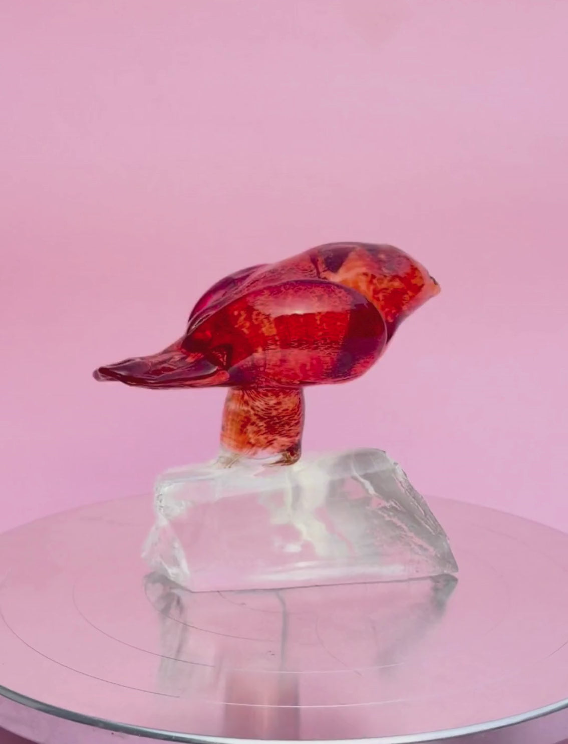 פסל זכוכית Red Bird On A Rock A