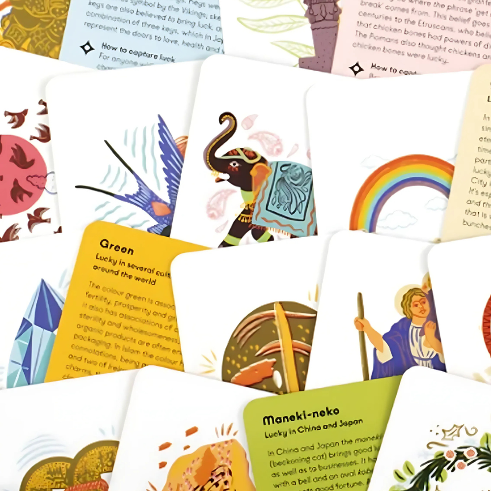 זמנו לחייכם מזל טוב ושפע עם קופסת המזל של המותג הבריטי Laurence King. הקופסה מכילה כ-60 קלפים מעוצבים להפליא, המציגים בחזיתם סמלים שונים מתרבויות שונות מרחבי העולם, שמזוהים כולם עם מזל טוב ושפע. בחלקו האחורי של כל קלף תמצאו הסבר מפורט על הסמל המוצג בחזית הקלף שבחרתם ובחפיסה תחכה לכם גם חוברת מידע על הסמלים השונים. אם אתם בלחץ לפני ראיון עבודה, מצגת חשובה או אפילו בליינד דייט - שלפו קלף וזמנו עבורכם את אנרגיית המזל שתגרום לכם לצלוח את כל אלו בעיניים עצומות. מתנה נהדרת לעצמכם או לחברה שתמיד יש לה מזל נאחס. המארז הינו באנגלית.