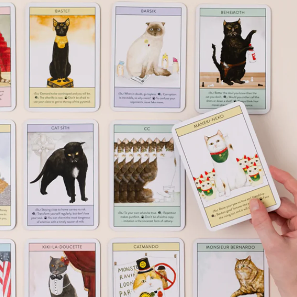 תנו לחכמת החתולים להנחות אתכם בדרך אל האושר, כל שנחוץ הוא חפיסת קלפים אחת ואמונה חתולית חזקה. החפיסה מכילה כ-50 קלפים מעוצבים לעילא, תמצאו שם טיפים פיננסיים, עצה טובה ליום עקום, זריקת אומץ, ועוד - לכל מטרה יש את החתול-גורו המיוחד שלה והקלף המדויק שיתן לכם את הבוסט היומי הנחוץ. מתנה נהדרת לאוהבי חתולים וגורואים כאחד. המארז הינו באנגלית.