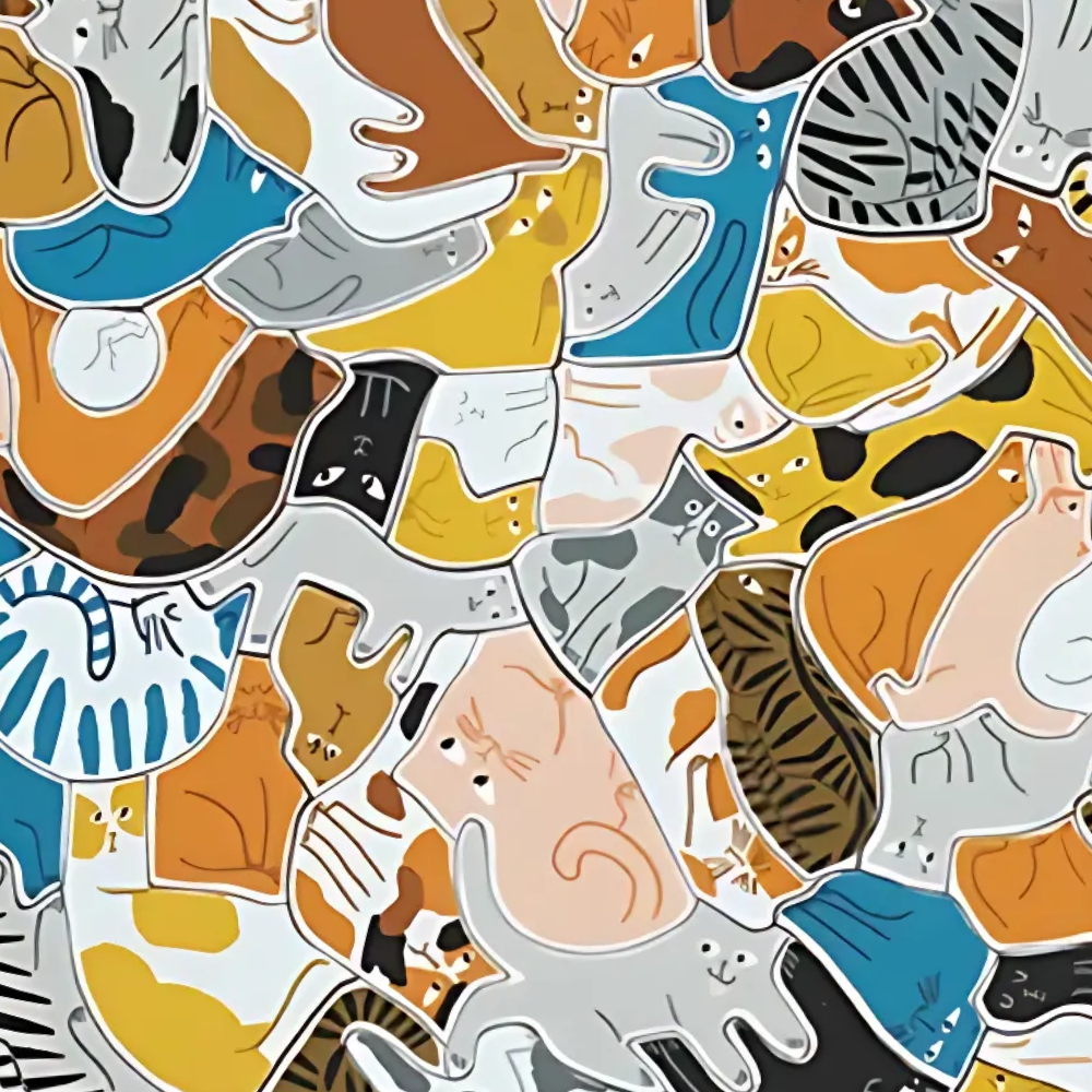 פאזל 300 חלקים, כאשר כל חתיכה בו היא חתול (וחתיכה אחת שהיא כלב) ואין חתיכה הזהה לשנייה. הרכיבו את החלקים וקבלו מקבץ המציג 300 חתולים (וכמובן כלב אחד) מכורבלים בנחת האחד בשני ויוצרים כר חתולי עגלגל. הפאזל מעורר מחשבה יצירתית שכן חתיכות הפאזל לא קונבנציונליות וייחודיות בצורתן. מתנה נהדרת לילדים או לכל מבוגר חובב חתולים ומשחקי חשיבה